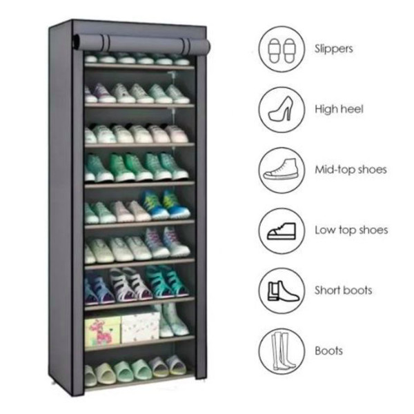 Etagère à chaussures à 9 niveaux avec couvercle,placard pliable pour chaussures